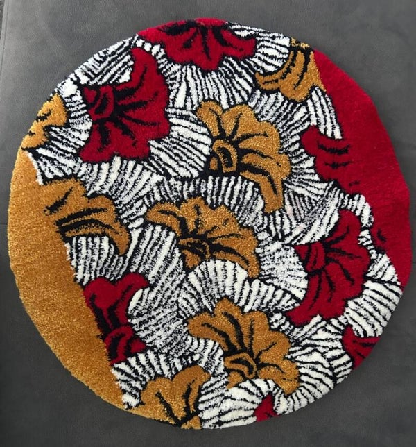 A rung inspired by a popular African textile print called Mgholodi in Igbo. Features red and yellow flowers with yellow and red colour blocks bilateraly.